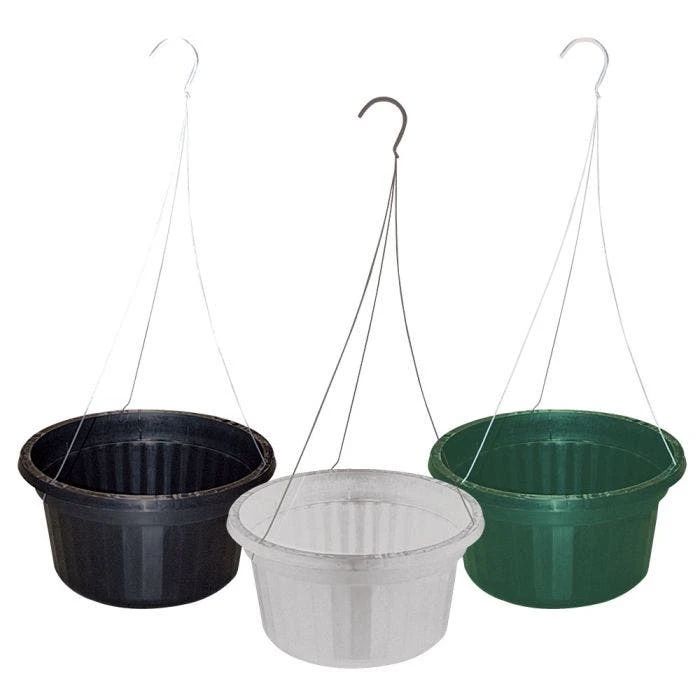 Belden Plastics manufactures their Pop Baskets using 100% recycled materials. These injection-molded plastic containers measure 10 inches in diameter and 6-1/2 inches in height. Each case contains 50 baskets and 50 3-strand wire hangers. Belden Plastics has provided innovative products to growers since 1965. They engineer and manufacture each of their products in the USA. If you are a grower or a garden center, you can count on the quality of Belden products. Belden Pop Baskets provide you with two products in one. Each basket features a pop-out pedestal on the bottom. Keep this pedestal in the unit to use it as a hanging basket. Alternatively, you can pop it out and use it as a pedestal planter! Choose from white, green, or black baskets below. Click HERE for our complete selection of Belden Plastics hanging baskets.