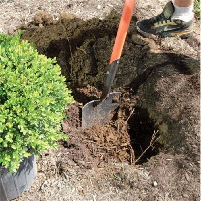 You can dig out soft, muddy soil with ease without the handle getting in the way. With the blade’s solid shank, there isn’t any place for soil to catch and build up at the bottom of the shank, like an open back style. Applications: digging trenches, digging out trees, digging holes that need straight edges, minimal or tight digging spaces. Ship wt 6 lbs. Lifetime warranty.