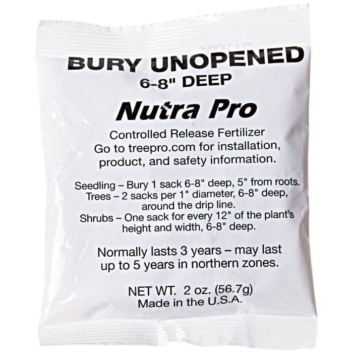 To use, bury two packets per inch of tree diameter or one packet per foot of shrub height. For maximum efficiency, evenly space the packs throughout the root zone. The Nutra Pro packet makes it easy to use and eliminate the time and cleanup of measuring and mixing fertilizers.