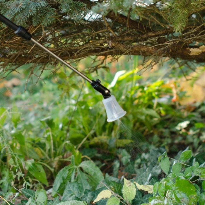 Unique fully adjustable swinging nozzle can be angled down, straight up, and every angle in between and features a non drip/drift guard. Locking spray feature allows for continuous spraying without the need to hold down the lever. Holds 2 liters of liquid and features a 24″ extension wand. Spray bottle has a large opening for easier filling and feet on the bottom for stability. Sprayer also has chemically resistant Viton O-rings and an automatic relief valve to prevent over pumping.