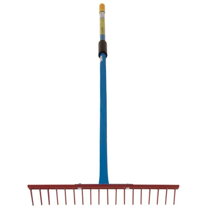 WW Manufacturing makes the Original Dura Rake using aircraft-quality steel tubing. Its all-welded steel construction makes it incredibly durable. The head of this rake measures 18 inches in width. It has heat-treated, 3-inch long teeth spaced an inch apart. The 60-inch handle has foam hand grips.