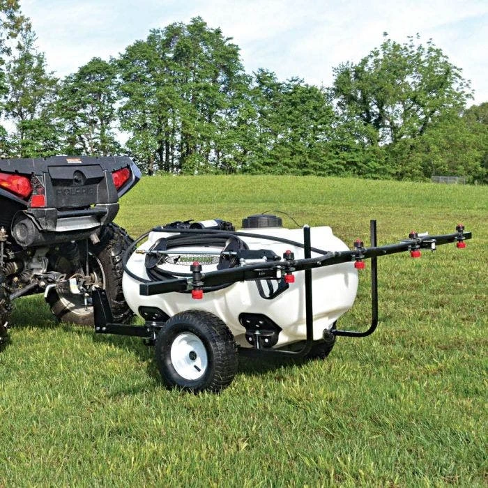 Green Leaf designed their WorkHorse deluxe trailer sprayers for maximum efficiency. Attach it to your ATV or lawn tractor and get to work! These trailer sprayers feature a breakaway boom with multiple spray nozzles. The deluxe spray gun features a rubber grip and an adjustable brass tip. A PowerFloâ„¢; 7800-Series 12-volt pump forces the solution to the boom nozzles and spray wand. These trailer sprayers provide a wide band of coverage and pump 2 gallons per minute. This allows you to cover a lot more area in a shorter amount of time. See below for size options. Due to their weight/dimensions, both the LG425DTS and LG627DTS must ship via motor freight delivery. They are not eligible for any free or reduced shipping offers.